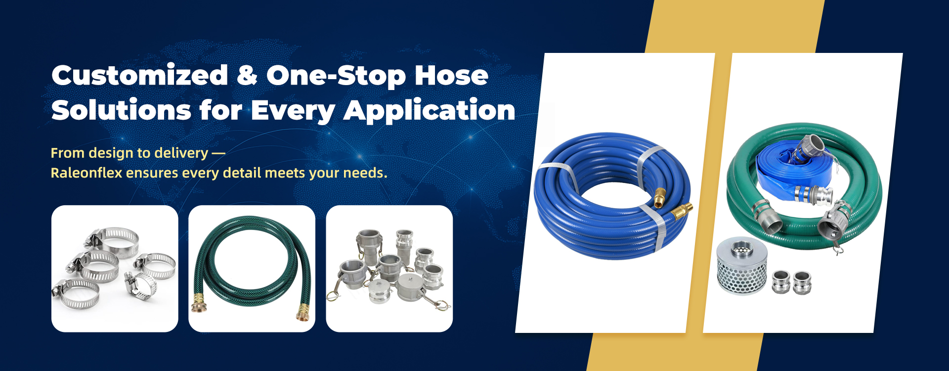 Raleonflex specializes in high-quality and cost-effective flexible hoses and fittings for industrial fluid transfer. Integrating R&D, production, sales, and export, our product range covers PVC, TPU,PE, PU,and rubber hoses—widely used in gardening, agriculture, industrial manufacturing, mining, automotive, and marine sectors. With excellent products and a complete service system, Raleonflex has become a trusted partner for clients worldwide.