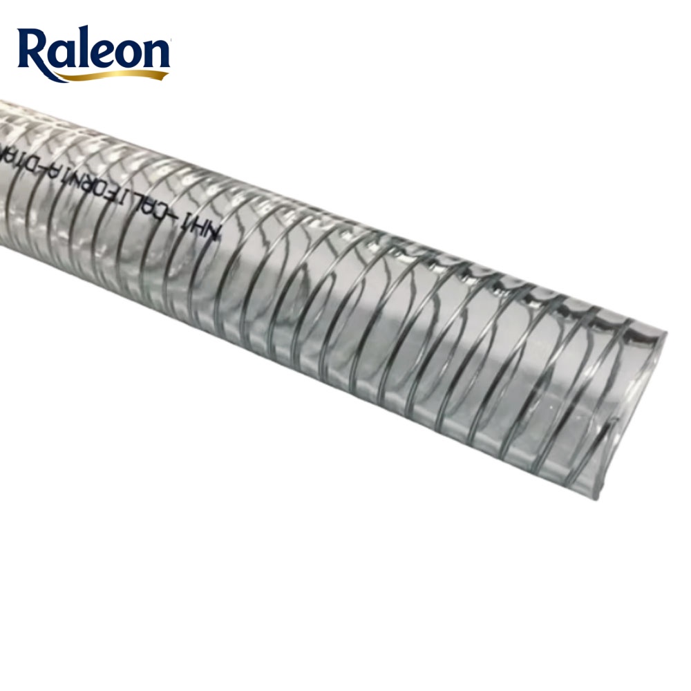 The Light Duty PVC Steel Wire Reinforced Hose is designed for flexible use in a wide range of applications, such as water, oil, and powder transfer in factories, agriculture, and other industries. It features a spiral steel wire reinforcement incorporated within the PVC tubing, ensuring strength, durability, and flexibility. This hose is non-toxic, lightweight, and UV-resistant, making it ideal for environments with moderate pressure.