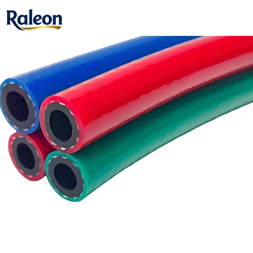 The PVC Twin Welding Hose is designed for the transportation of Oxygen and Acetylene gases used in all types of metal welding and cutting equipment. Made of high-quality PVC material, it features excellent flexibility, color stability, pressure resistance, and UV protection. This hose is lightweight, smooth inside and outside, and provides superior resilience under frequent bending conditions.