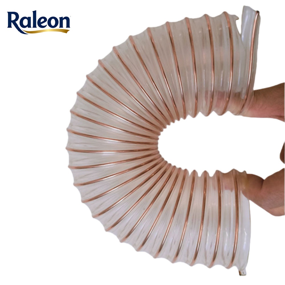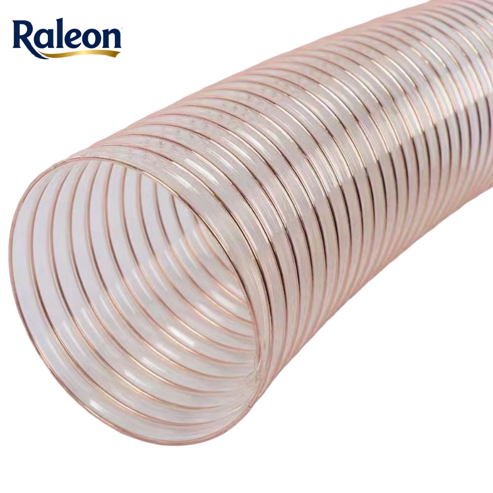 The PU Steel Wire Duct Hose is made of high-quality ester-based polyurethane, reinforced with a copper-plated spring steel wire helix. It offers excellent flexibility, transparency, abrasion resistance, and static conductivity, making it ideal for dust collection, air ventilation, powder or granulate transport, and industrial vacuum systems.